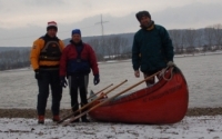 Königswinter Nachdem die Temperaturen samstags im zweistelligen Minusbereich waren liefen die Telefone heiß: Fahren wir oder nicht? Aber sonntags waren die Temperaturen - mit richtiger Kleidung - wieder erträglich und so machten sich 3 Kanuten auf den Weg nach Leubsdorf, um das Unternehmen "Eiswasserfahrt" anzugehen. Man traf sich recht früh um 9:00 Uhr, um endlich mal im Hellen am Bootshaus zu sein. Das Bootshaus in Sinzig hatte aber leider zu so früher Stunde noch geschlossen, so dass man sofort Richtung Kripp fuhr. Weil das Hotel "Rheingold" aber leider zu ist, kratzte man nebenan beim "XXL-Restaurant" um 10:50 Uhr an der Tür (Öffnungszeit ab 11:00 Uhr). Mit dem Hinweis "Es ist glatt hier" wurde aber die Tür geöffnet und es wurden sogleich 3 Warsteiner angezapft. Nachdem der Schneefall vorüber war und die XXL-Schnitzel gegessen waren, machten sich die drei dann auf den Weg gen Unkel, um vor den Kanuten des KC Unkel an deren Bootshaus zu sein. Was auch gelang. Hier trank man aber nur einen Glühwein - weil man ja im Hellen zu Hause sein wollte! Bei nachlassendem