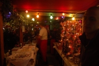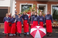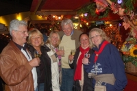 Donnerbalken wieder eine der Attraktionen des Festzuges. Aber kurz nach der Ankunft auf dem Marktplatz fing es auch wieder an zu regnen - und hörte bis Montag leider auch nicht mehr auf. Aber allen beteiligten Kanuten war anzusehen, dass sie trotzdem Spaß und Freude am Verkauf von kräftigen Schmalzbroten, leckeren Lachshäppchen und hübsch dekorierten Käsespießen hatten. Und der gute Wein und der frische Federweiße (und Federrote) schmeckte den trotz allem zahlreichen und zufriedenen Gästen.
