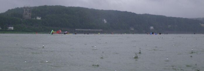 Unkel Beim völlig verregneten Rheinschwimmen, das der Kanu-Club Unkel bereits zum 17. Mal ausrichtete, stellte der KCK in diesem Jahr leider nicht die größte Gruppe. Auch bei der Tombola ging der KCK diesmal leer aus. Aber dennoch war einem Mitglied der Königswinterer die Aufmerksamkeit von Presse und Fernsehen sicher: Finn Thomas wurde wenige Tage vor seinem 4. Geburtstag als jüngster Schwimmer ausgezeichnet und stellte sich souverän den Fragen der Journalisten.