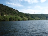Niederfell/Koblenz Trotz des attraktiven Ziels und des hervorragenden Paddelwetters fanden sich nur 5 Kanuten zur Wanderfahrt an die Mosel ein. Die Tour führte auf dem unteren Teil der Mosel von Niederfell entlang an Weinbergen und malerischen kleinen Dörfern bis in die Koblenzer Vorstadt Moselweiß. Die Mosel ist nur dank zahlreicher Staustufen schiff- bzw. paddelbar, diese Staustufen unterbinden allerdings nicht nur die für Paddler angenehme Strömung und stellen ein zeitraubendes Hindernis für eine Gruppe dar, da man entweder Schleusen, oder Umtragen muss.
