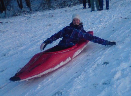 Jessica und Larissa am 18. Dezember 2010 beim "Rodeln" auf der Hirschburgwiese.