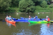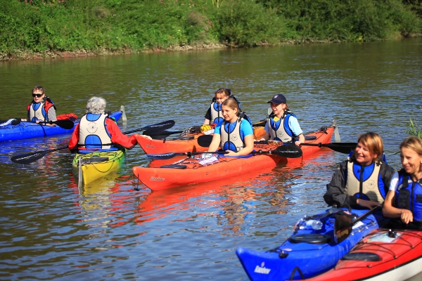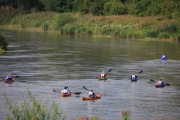 Die Flusswanderung begann auf dem Tanzwerder, dem Zusammenfluss von Werra und Fulda. Trotz des nicht ganz so freundlichen Wetters mit manchem kräftigen Schauer konnten die Kanu-Club-Frauen vom Wasser aus die wunderbare Landschaft rechts und links der Weser genießen , sich an den zahlreichen Graureihern und Schwänen mit ihren Jungen erfreuen und froh sein, einen Wanderfluss ohne Motorboote erleben zu können.