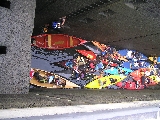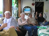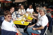 Neben der Paddelstrecke mussten unterwegs auch mehrere Laufstrecken zurückgelegt werden, so z. B. in Kripp, wo es uns nicht gelang, ein Lokal für die mittägliche Stärkung zu finden. Zwei Lokale hatten geschlossen und in einem dritten Lokal gab sich die Hausdame als Putzfrau aus und komplementierte unsere Jungfrau Johannes (hoffentlich haben wir davon ein Bild) panikartig zur Tür hinaus. So mussten wir halb verhungert Remagen ansteuern, wo wir nach einer kleinen Odyssee bei SCHRÖDERS gelandet sind. Diese Lokal sollte man sich merken, denn trotz unseres etwas ungewöhnlichen Outfits, gab es keine Probleme und darüber hinaus noch reichhaltiges und leckeres Essen, von dem sogar Peter satt geworden ist.