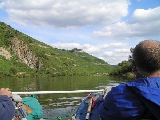 Am Sonntag, den 5. September, setzten wir die Tour von Traben Trarbach fort. Mit Schirm-Segel und Elektromotor kämpften wir uns flussabwärts über die Staustufe zur Schleuse Enkirch.