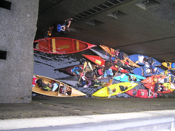 Mit vereinter Hilfe wurde das Missgeschick ohne Schaden für die in der Schleuse Schwimmenden gemeistert und das Boot aus der Schleusen-Kammer getreidelt. Doch auch der Kanu Club wurde von einer Kenterung nicht verschont.