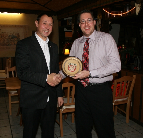 In diesem Jahr bekam Ralf Schettler vom Ersten Vorsitzenden Alexander Siegel den KCK-Ehrenteller für seine 40jährige Mitgliedschaft im KCK überreicht. Den Abschluss fand dieser vorweihnachtliche Abend bei herrlicher Aussicht auf das verschneite Rheintal mit der traditionellen Übergabe der Weckmänner an alle Gäste. Ein gelungener Abend - nur die angekündigte Schneefront ist nicht gekommen...