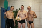 Aber da hatten die Unkeler die Rechnung ohne Alex Siegel, Peter Klaus und Ralf Schettler gemacht, die wie im Vorjahr den letzen sportlichen Event des Jahres mit 2:1 für den KCK entschieden. Vor allem Alex wuchs über sich hinaus und überbot beim "Rollen ohne Paddel" seine gute Leistung aus dem Vorjahr um volle zehn Rollen und sicherte mit diesen 25 Rollen dem KCK den zweiten Sieg in Folge. Auch die Zweier-Konkurrenz konnte der KCK für sich entscheiden. Lediglich die Disziplin "Rollen im Einer mit Paddel" gingen an den KCU. Da die Königswinterer ohne Damen oder Jugendliche nach Unkel gereist war, konnten diese beiden Disziplinen nicht ausgeführt werden.