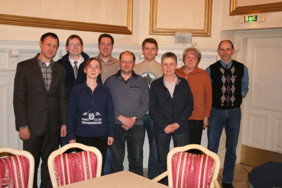 Königswinter Der Kanu-Club Königswinter geht mit einem nahezu unveränderten Vorstand in die neue Paddelsaison. Auf ihrer Jahreshauptversammlung im Rheinhotel Loreley wählten die Kanuten erneut Alexander Siegel zu ihrem 1. und Peter Klaus zum Zweiten Vorsitzenden. Sven Ludwig wurde zum Schriftführer und Fotowart ebenso wiedergewählt wie die Kassenwartin Rosemarie Siegel und der Boots- und Bootshauswart Michael Ziegert, der Ingeborg Lister gratulieren konnte, die mit 564 Kilometern die weiteste Strecke im Jahr 2010 gepaddelt ist. Als Beisitzer wurden Regina Knoblich, Frank Thomas, Ralf Schettler und Rosemarie Werther bestätigt. Einzige Veränderung zum Vorjahr: Ulrich Lister stellte sich aus beruflichen Gründen nicht wieder zur Wahl. Alexander Siegel dankte dem ehemaligen Jugendwart für seine fünfjährige Vorstandsarbeit, dessen Aufgaben zukünftig vom Vorstand gemeinsam übernommen werden. Die traditionelle Ermunterung für den Kanuten, der 2010 nicht so oft den Weg ins Bootshaus gefunden hat erhielt in diesem Jahr Dennis Birsch, der sich lediglich zum Anpaddeln ins Boot setzte und es somit auf magere 14 gepaddelte Kilometer gebracht hat.