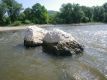 So eine Flusswanderung kann man im Boot erleben - oder man schiebt sein Boot und "wandert" durch den Fluss. Dies war zu Beginn der 1. Wanderfahrt am Muttertag notwendig. Da wurde sich extra für den Rhein entschieden, da die kleineren Flüsse in der Umgebung kaum noch Wasser haben - und dann waren am Ufer am Bootshaus Steine zu entdecken, "die nie ein Mensch zuvor..." Doch nachdem die Bootshaus-Kribbe "umwandert" war, konnten die Teilnehmer doch noch ein paar Kilometer paddeln...