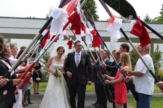 Königswinter-Heisterbacherrott Der Erste Vorsitzende des KCK, Alexander Siegel, hat am 13. Juli 2013 seine langjährige Freundin Jessica zum Traualtar geführt. Der Kanu-Club hat es sich natürlich nicht nehmen lassen, dem Brautpaar und seinen Gästen durch ein Paddel-Spalier eine Aufwartung zu machen.